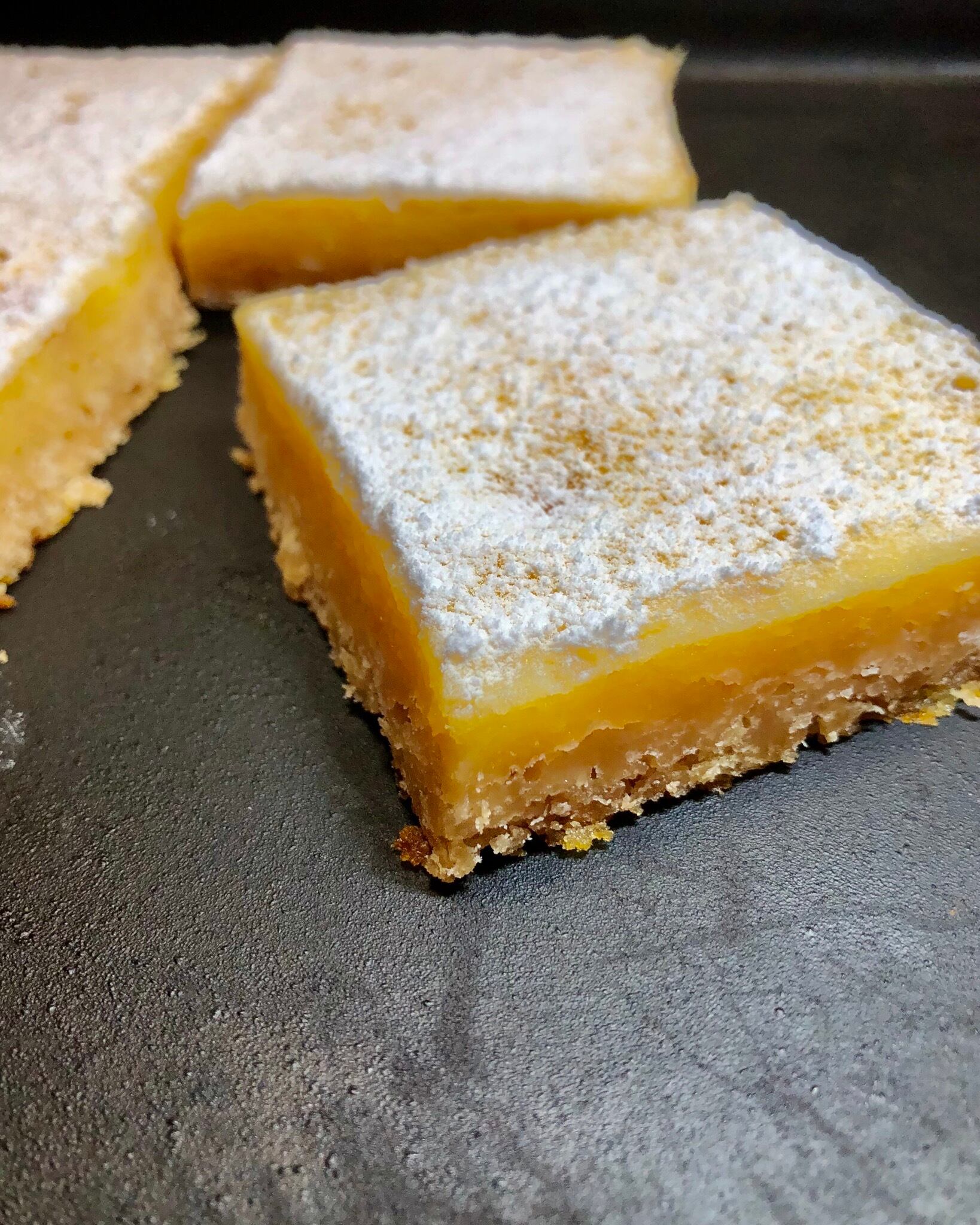 クッキー生地を一度焼いてその上にレモンクリームをのせてもう一度焼きました。レモン果汁がタップリ入っています。